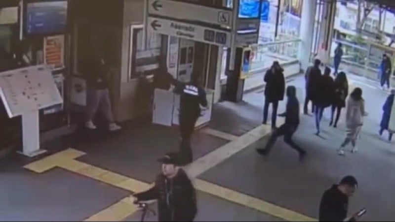 İstasyonda temizlik görevlisi olarak çalışan 36 yaşındaki Çetin Aktay, yüzü maskeli ve kapüşonlu halde, aynı istasyonda güvenlik görevlisi olarak çalışan 34 yaşındaki Gülnihal Karadereli’nin yanına yaklaştı.