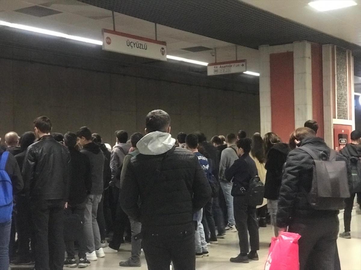 Vagondaki yolcuların boşalmasıyla Üçyüzlü durağında yoğunluk oluşurken, vatandaşlar daha sonra gelen metrolara binmekte güçlük çekti.