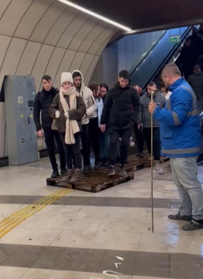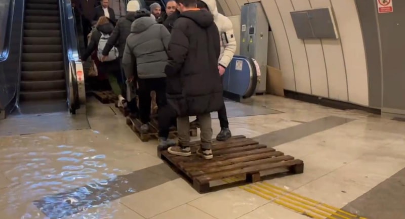 Metrobüs durağı alt geçidinin tahliye kısmında biriken suların zeminden yukarıya doğru taşması sonrası vatandaşlar yürümekte zorluk çekerken, İSKİ ekipleri alanda su tahliyesi çalışması başlattı. Merdivenlerin bittiği ve vatandaşların yürüdüğü alanda tahta paletli önlem alındı.