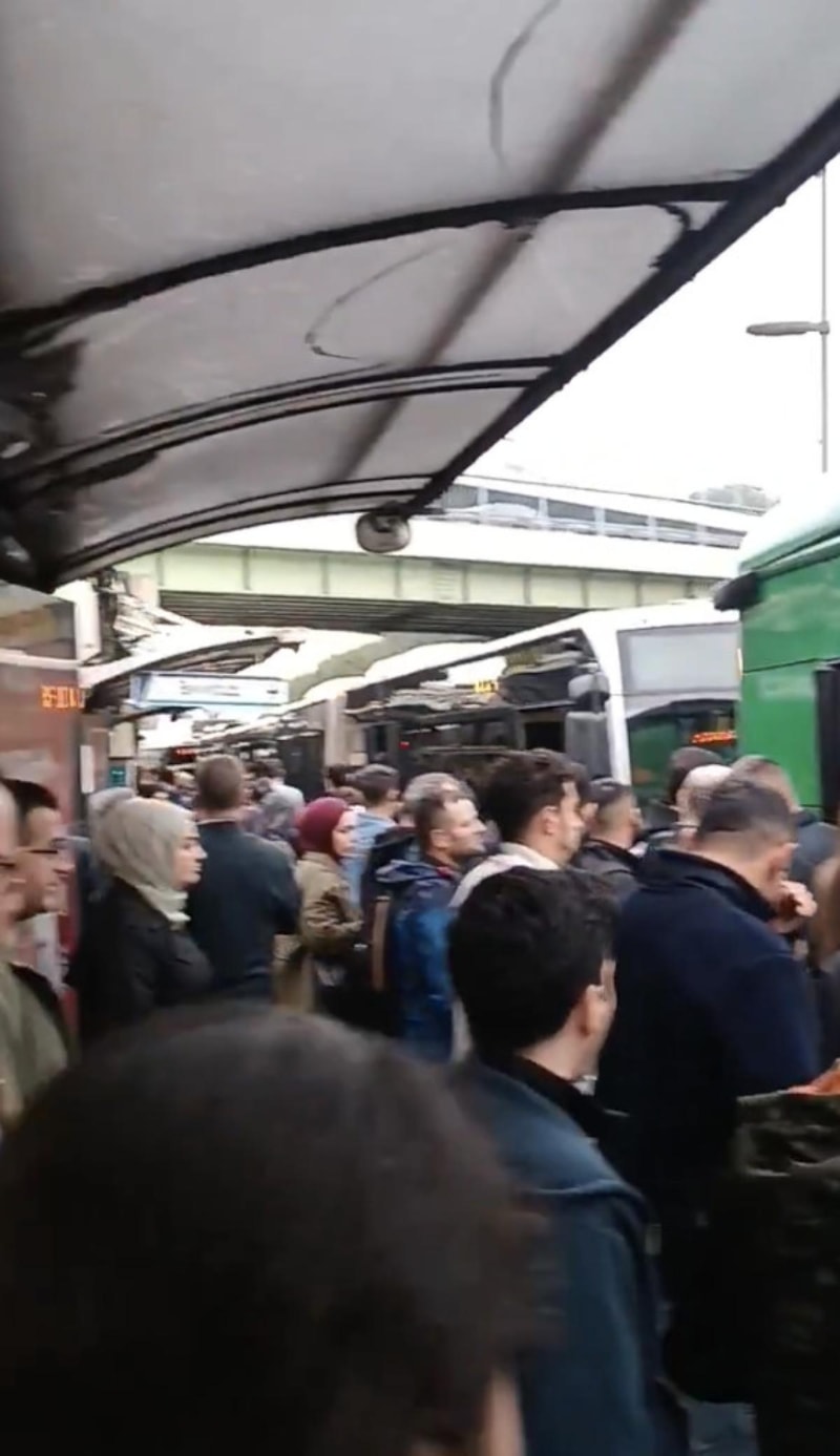 Metrobüsün arıza yapması sonrası durakta yoğunluk oluşurken, vatandaşlar dakikalarca bekledi.