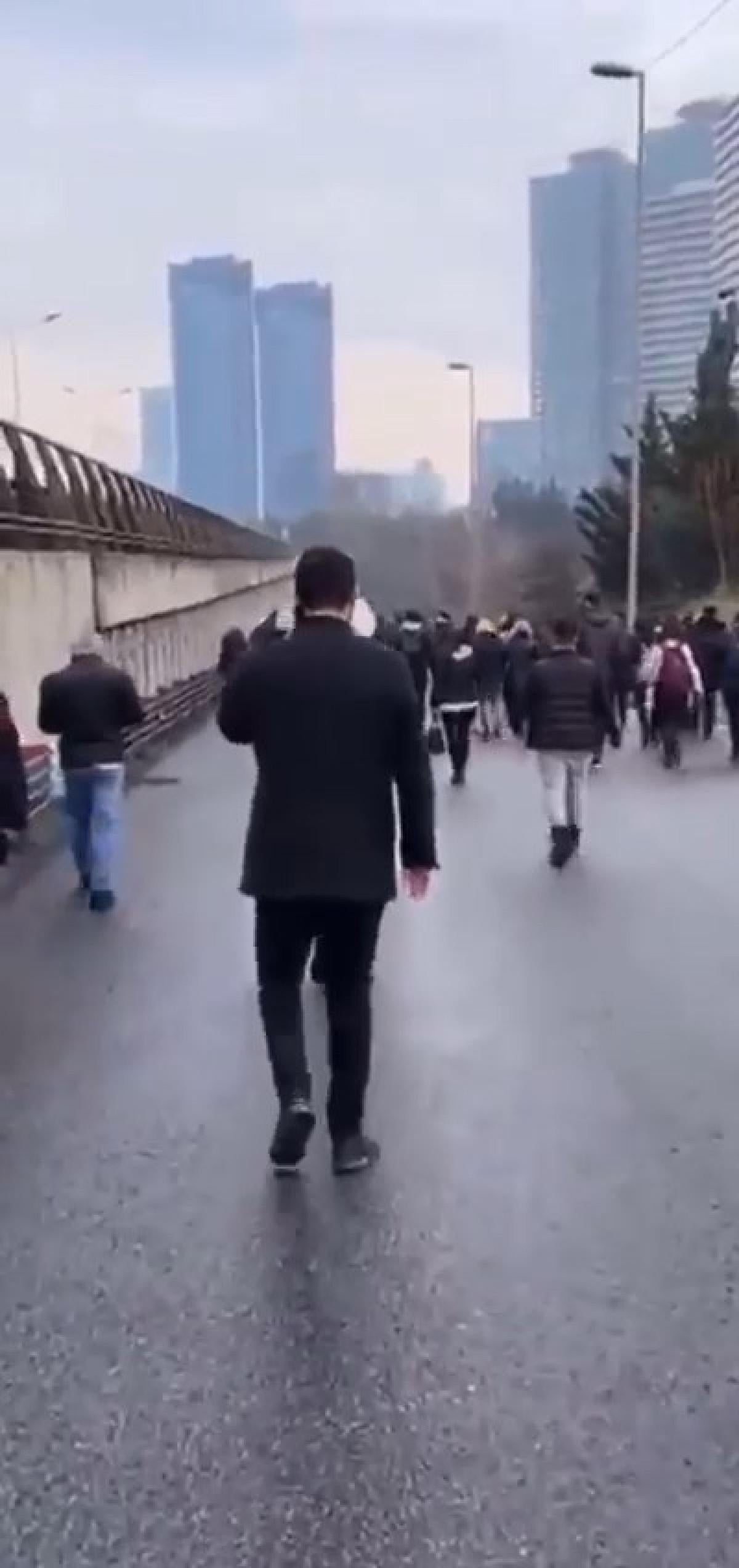 Bu nedenle sefere devam edemeyen metrobüsten inen vatandaşlar, tehlikeli yolda yürümeye çalıştı.