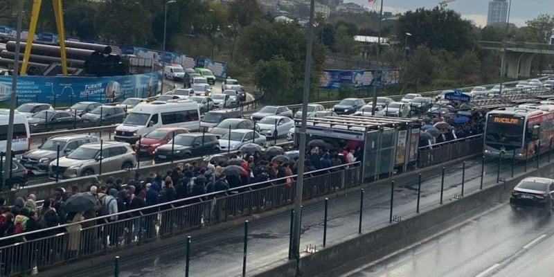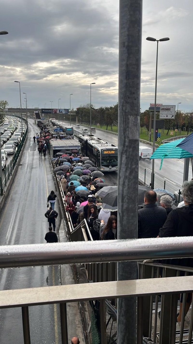 İstanbul'da hem havanın yağmurlu olması hem de metrobüste yaşanan arıza nedeniyle vatandaşlar, dakikalarca kuyrukta bekledi. Altunizade ve Sefaköy duraklarında izdiham yaşandı.