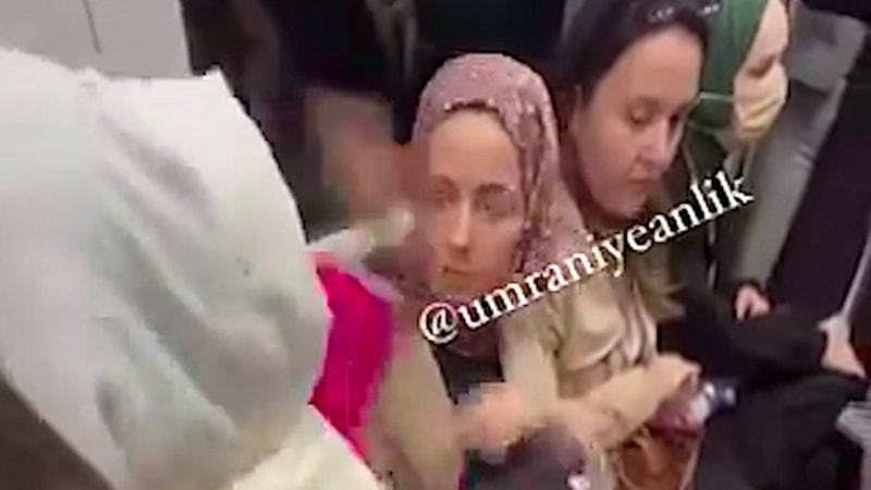 İstanbul'da metroda yolculuk yapan iki kadın bilinmeyen bir nedenle tartışmaya başladı. Kadınlardan biri diğerine tokat atınca ortalık karışırken o anlar böyle görüntülendi.