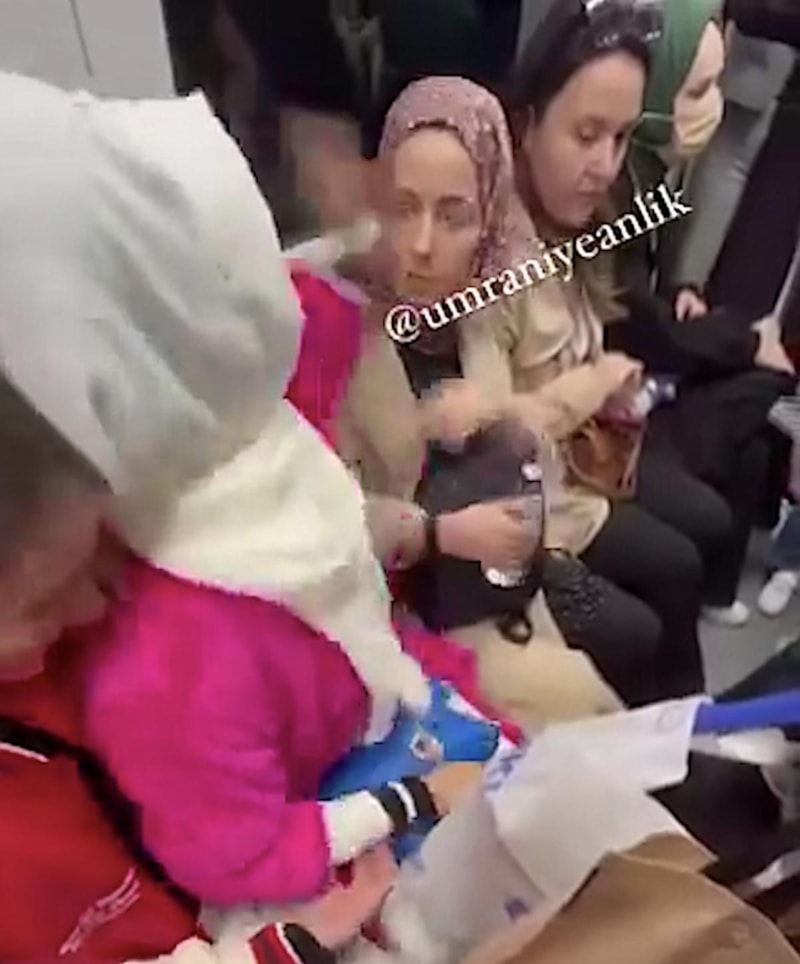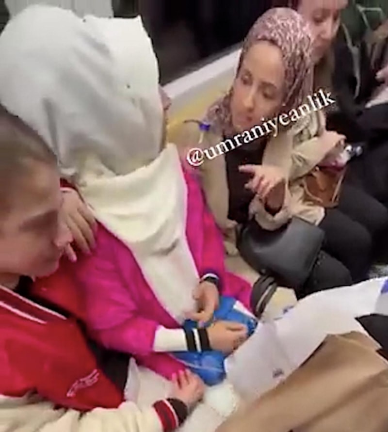 Metroda yolculuk eden iki kadın arasında nedeni bilinmeyen bir şekilde tartışma çıktı.