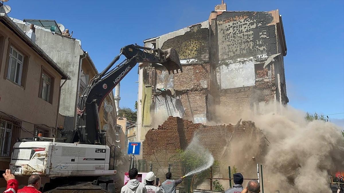 Fatih'te bulunan bir metruk binada deprem nedeniyle kısmı çökme meydana geldi.