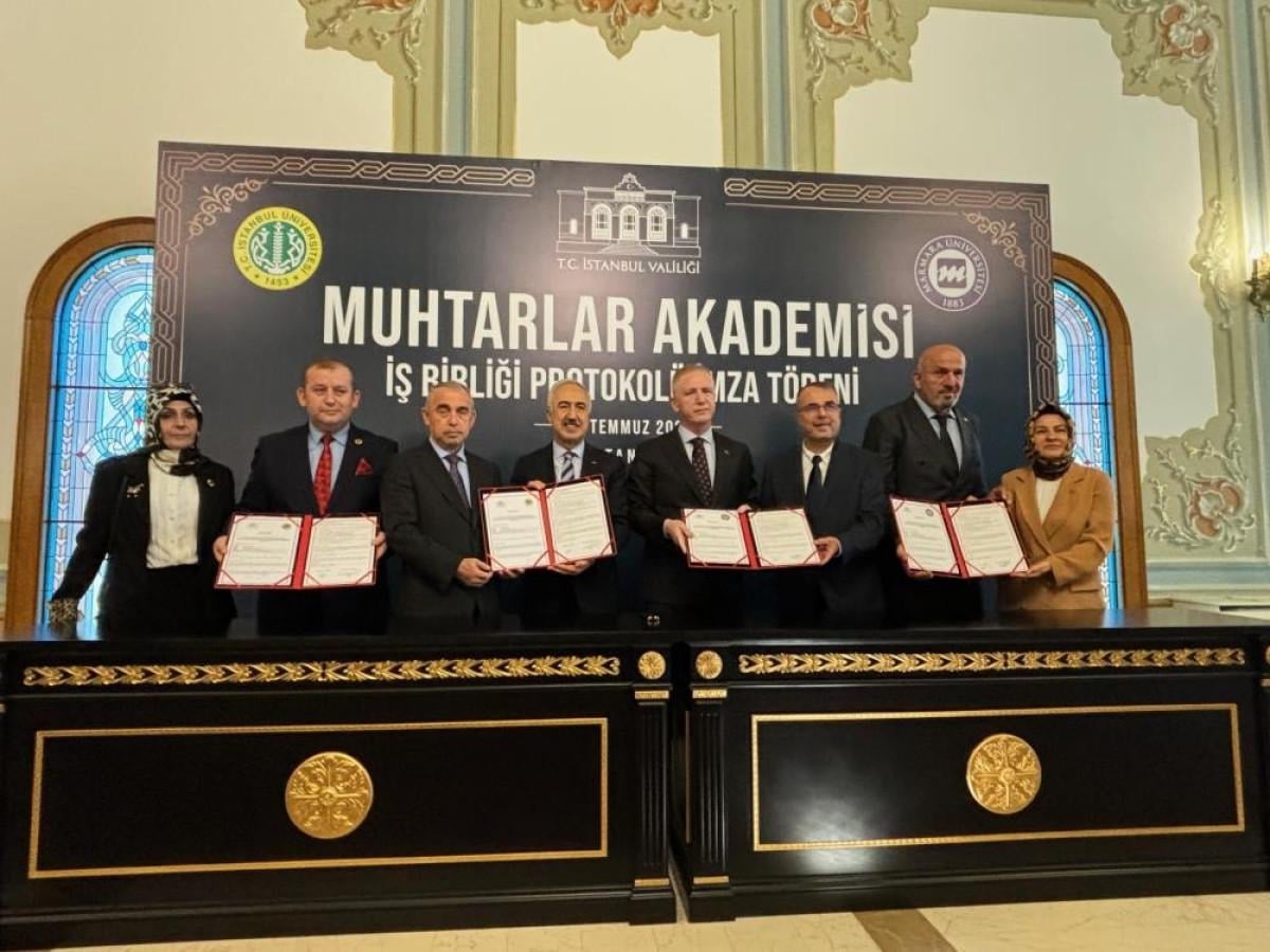 İstanbul Valiliği, İstanbul Üniversitesi ve Marmara Üniversitesi arasında, kentte görev yapan mahalle muhtarlarına akademik eğitim verilmesini içeren "Muhtar Akademisi Eğitim Programı İş Birliği" Protokolü imzalandı.