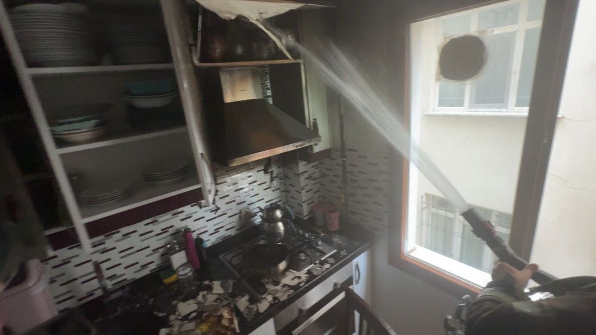 Yasemin T.'nin ocakta unuttuğu yemek alev aldı ve kısa sürede tüm odalar dumanla kaplandı. Alevlerin sıçramasıyla aspiratördeki elektrik hattı tutuştu.