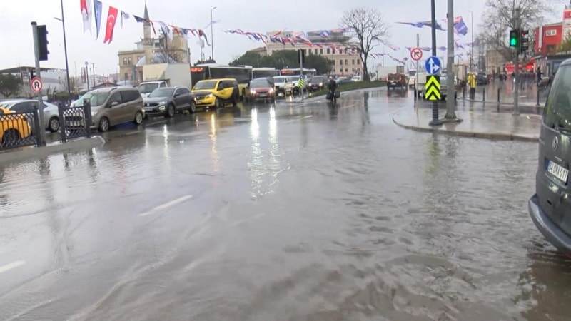 Fatih Eminönü’nde de aniden bastıran sağanak yağış nedeniyle yollar göle döndü. Ragıp Gümüşpala Caddesinde trafik ışıklarındaki kavşak yağmur sularıyla doldu.
