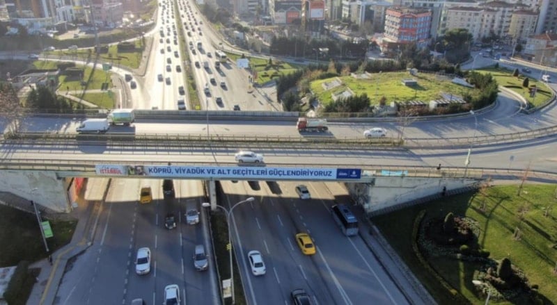 Çatlamış köprünün üzerinde bulunan İBB’ye ait bilboardda “Köprü, viyadük ve alt geçitleri güçlendiriyoruz” yazısı asıldığı halde hiçbir çalışma yapılmaması dikkati çekti.