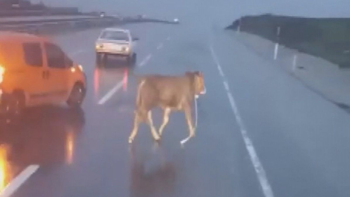 Arnavutköy-Çatalca yolunda ise bir inek, yola fırlayarak koşmaya başladı. İneği gören sürücüler, kornaya basarak hayvanı yoldan çıkarmak istedi.