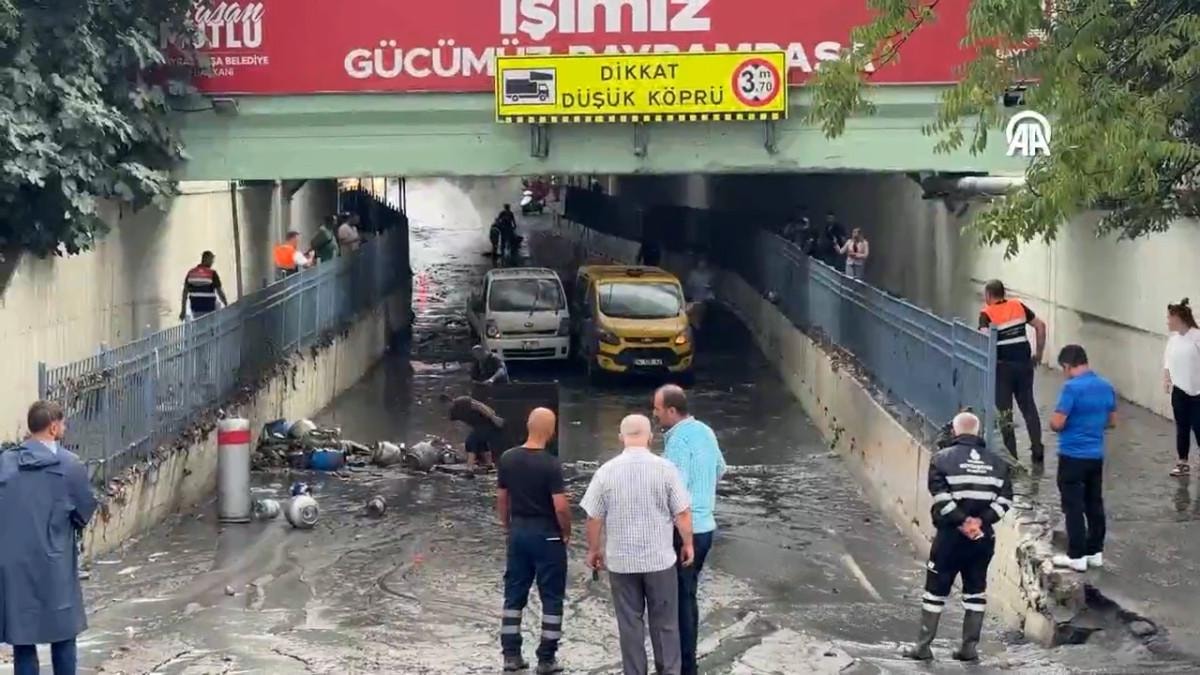 Aniden bastıran sağanak yağış etkisiyle Bayrampaşa'da bulunan Maltepe Alt Geçidi'ni su bastı.