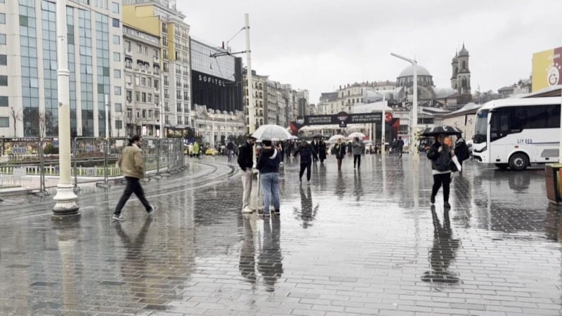 Megakent'te gece saatlerinde başlayan sağanak aralıklarla etkisini artırırken Taksim Meydanı ve İstiklal Caddesi'nde yağmura yakalananların bazılarının şemsiyeleriyle yürüdüğü bazılarının ise duraklara sığındığı görüldü.