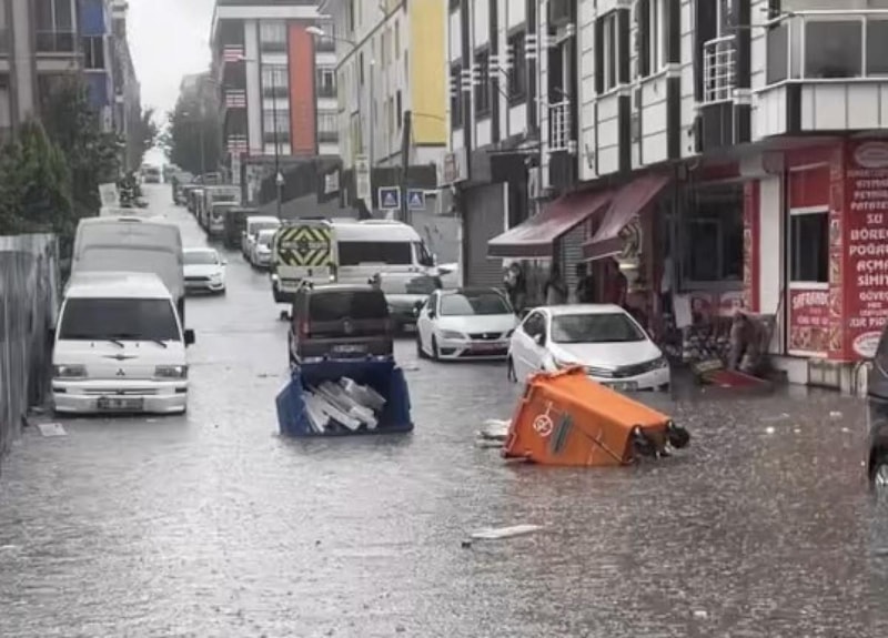 Uyarının ardından sağanak yağışın etkili olduğu Sultangazi ilçesinde cadde ve sokaklar sular altında kaldı.