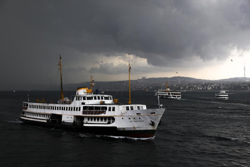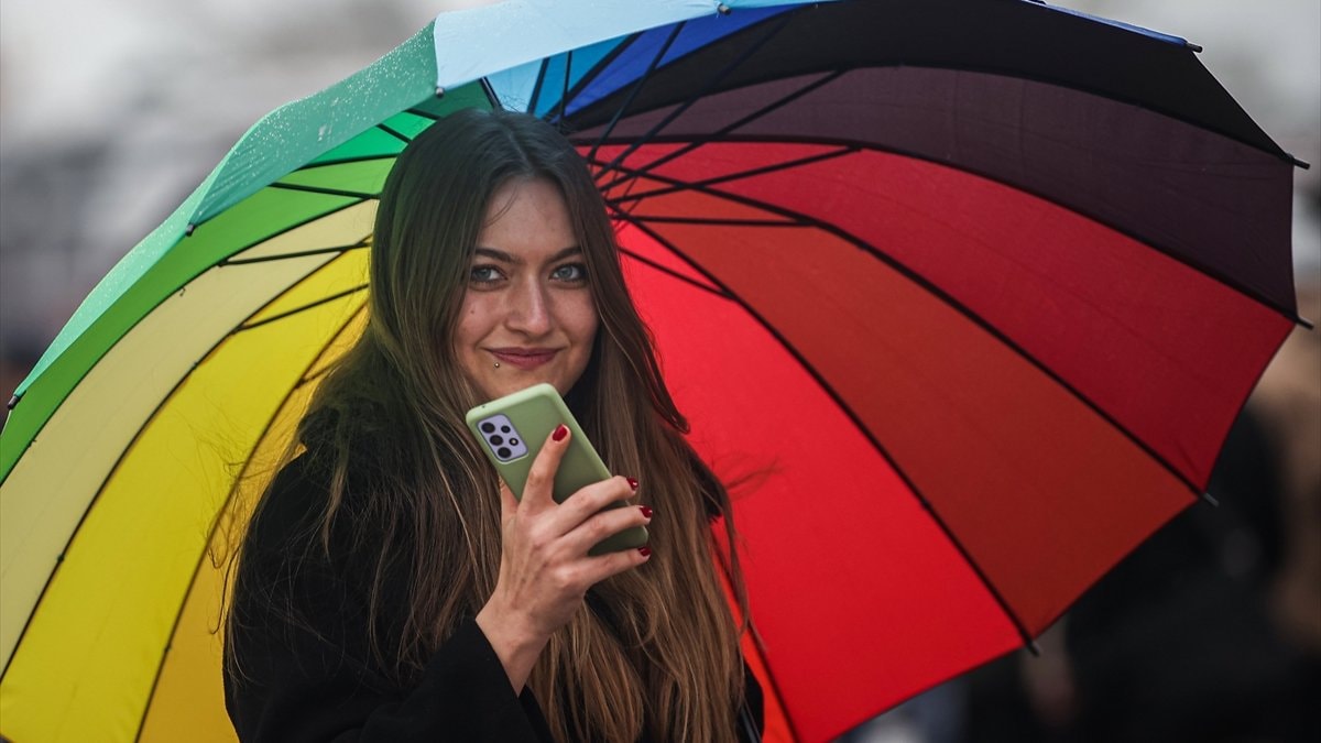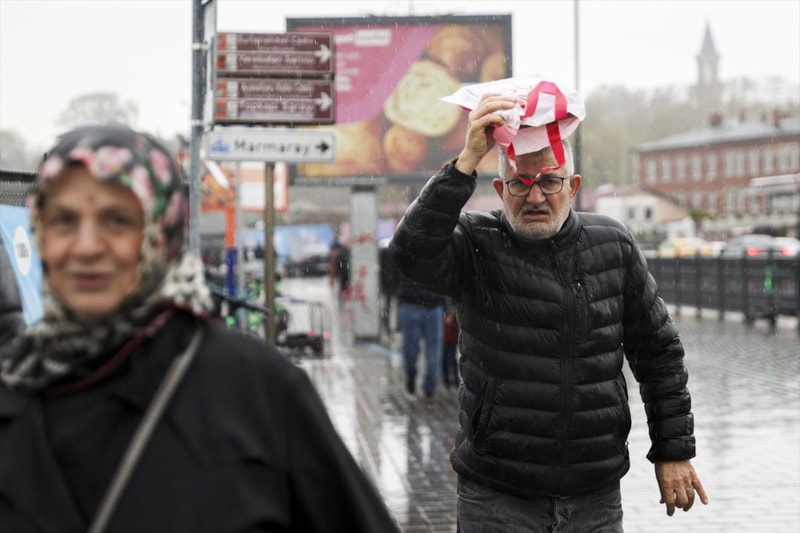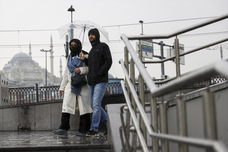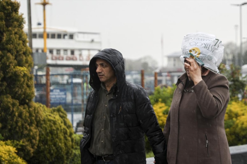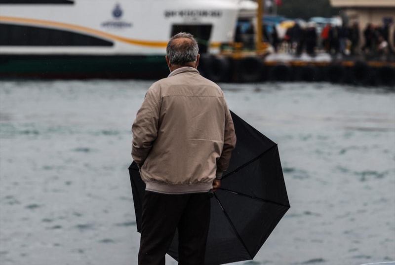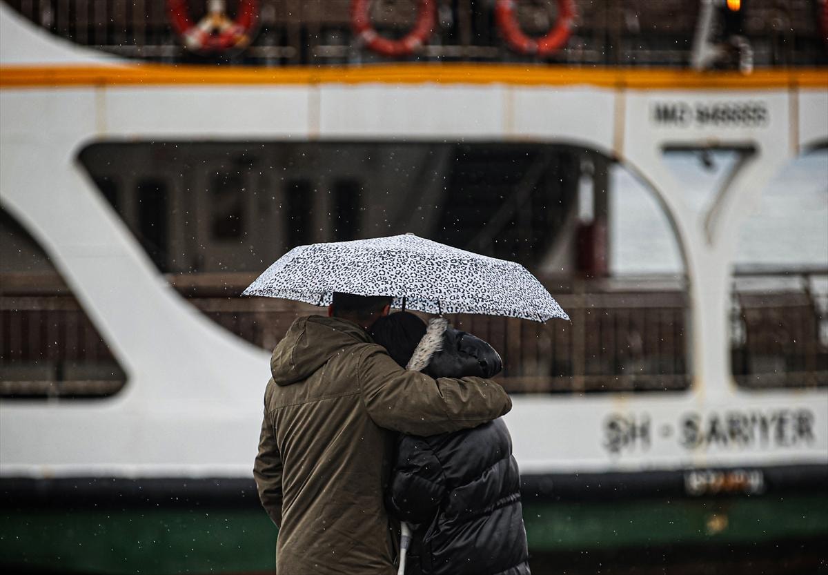 Kadıköy İskelesi ve çevresinde vatandaşlar şemsiyelerini açarak korunmaya çalıştı.