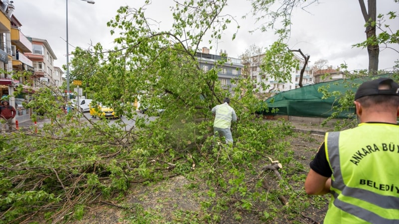 Ağacın devrilmesi nedeniyle sokak trafiğe kapanırken olay yerine itfaiye ve polis ekipleri sevk edildi.