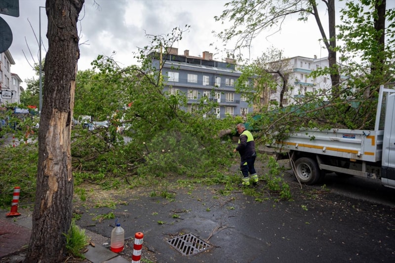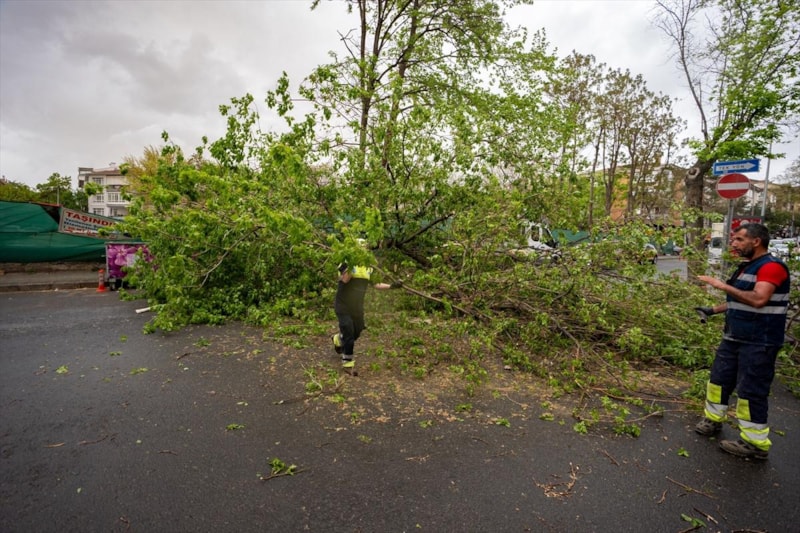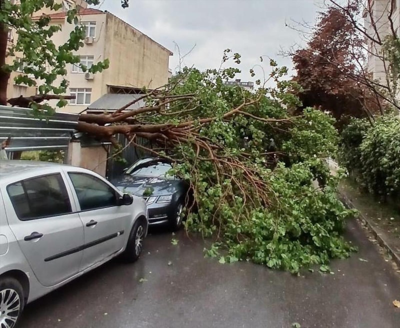 Sağanak yağış nedeniyle Maltepe'de ağaç devrildi.