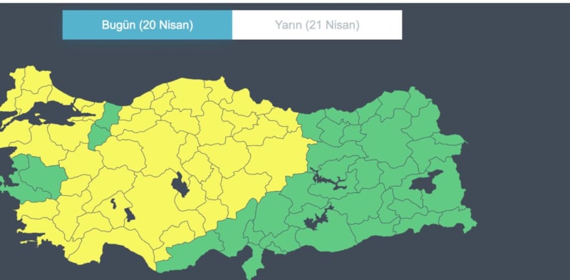 Yağışların; (Bilecik hariç) Marmara, Güney Ege, Batı Akdeniz ve Uşak çevreleri ile Kütahya'nın batı ilçelerinde kuvvetli ve yer yer çok kuvvetli olması bekleniyor.