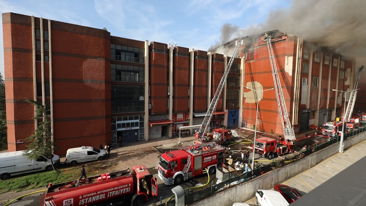 İkitelli'de, Aykosan Sanayi Sitesi Çarşısı A Blok'taki 4 katlı iş merkezinin en üst katında ayakkabı yapımında kullanılan ham maddelerin bulunduğu depoda henüz bilinmeyen nedenle yangın çıktı.