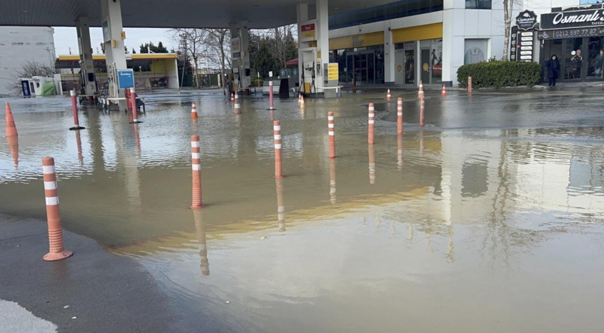 Patlayan şebeke hattından akan tonlarca su, akaryakıt istasyonu, metro şantiyesi ve çevredeki bir parkta baskına neden oldu.