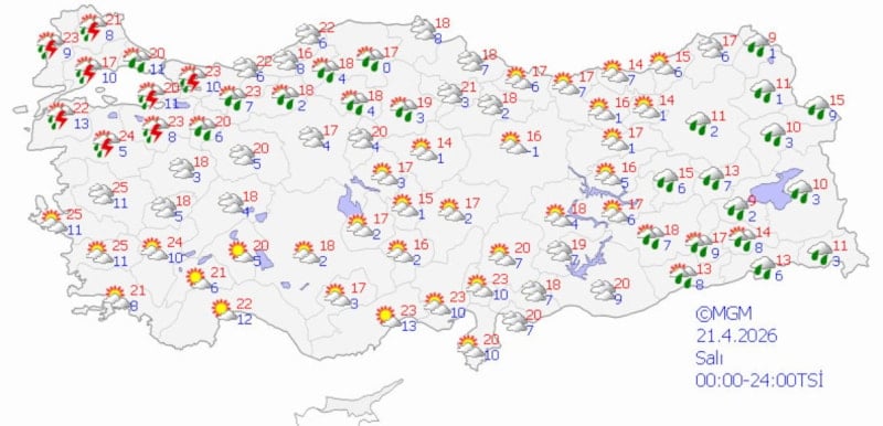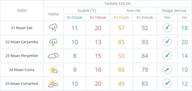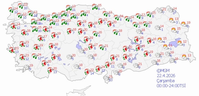 Yağışların 22 Nisan Çarşamba günü Anadolu Yakası ve Boğaz çevresinde yer yer kuvvetli olmasının beklendiği, yağışlı sistemin perşembe sabah kenti terk edeceğinin tahmin edildiği kaydedilen açıklamada, "Sıcaklıkların çarşamba günü mevsim normallerinin 4 ila 6 derece altına düşeceği, cuma günü tekrar mevsim normallerine yükselmesi beklenmektedir" denildi.