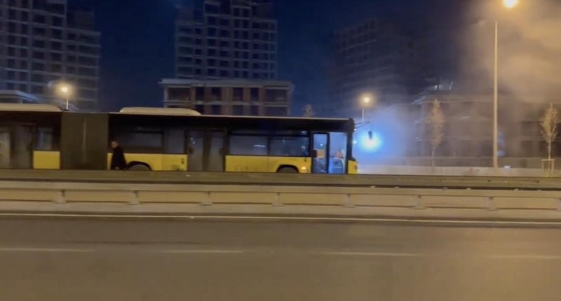 Başakşehir bölgesinde seyir halinde olan bir İETT otobüsünün yolun ortasında durduğunu fark eden bir vatandaş o anları kayıt altına aldı.