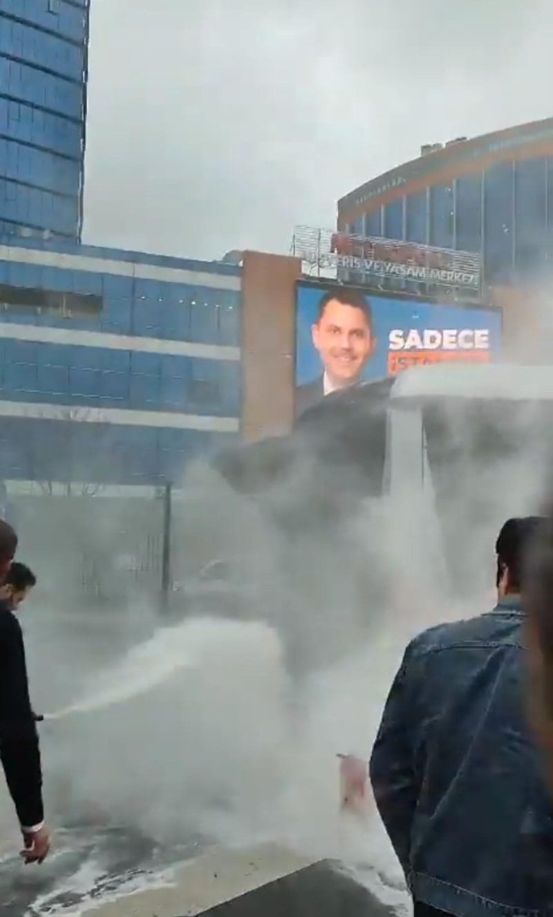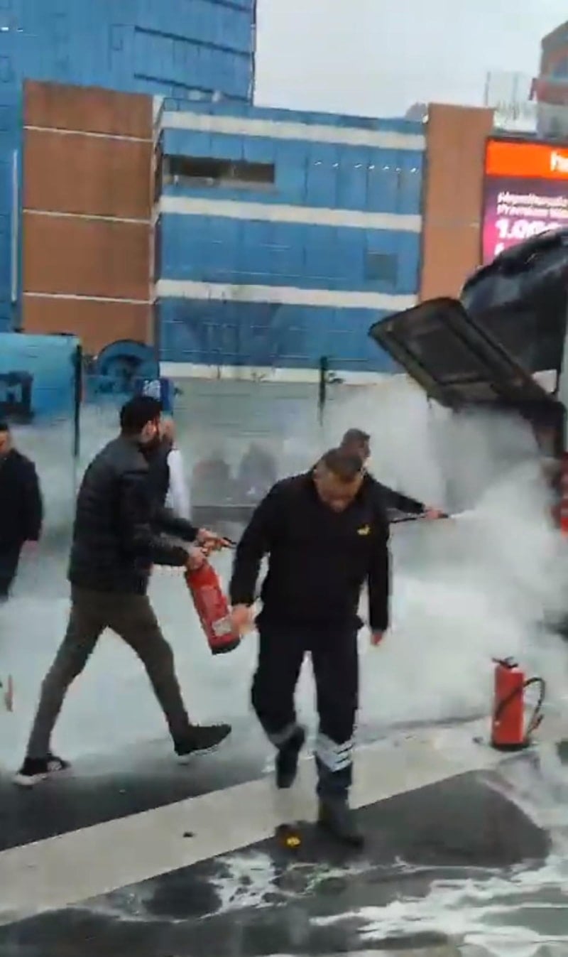 Bahçelievler metrobüs durağı girişi Avcılar-Topkapı yönünde bir metrobüsün motor kısmında yangın çıktı.