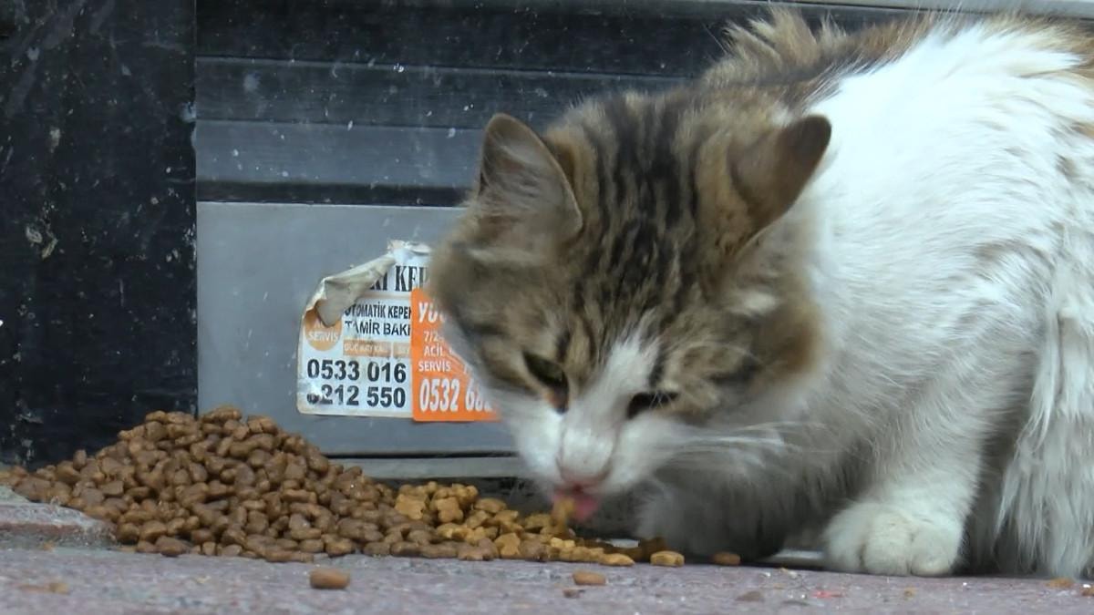 Mamaların dağıldığını gören pet shop sahipleri, aynı noktaya yine mama koyarak kedileri beslemeye devam etti.