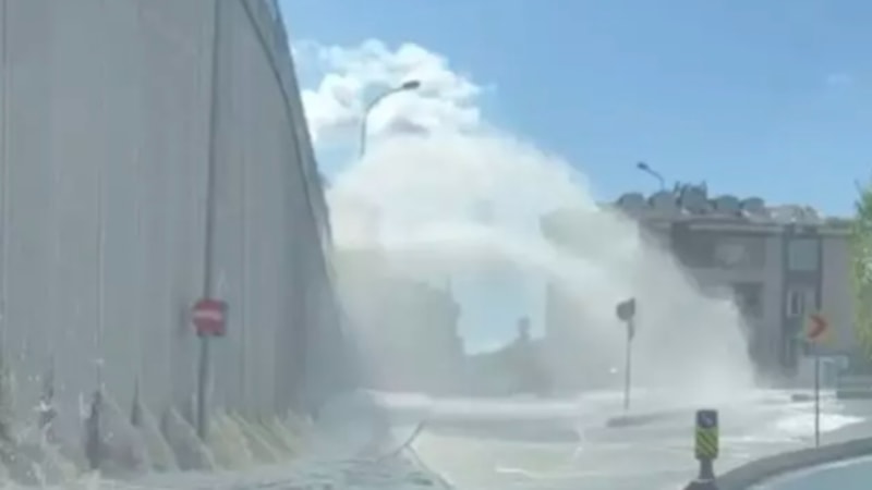 Eyüpsultan, Silahtarağa Tüneli girişinde su borusu patladı. Metrelerce yükseğe fışkıran su yolları göle çevirirken su birikintisi nedeniyle iki tramvay mahsur kaldı.
