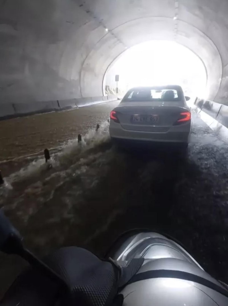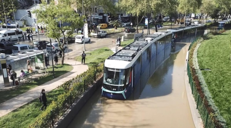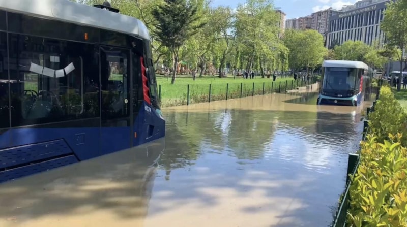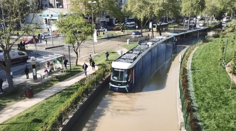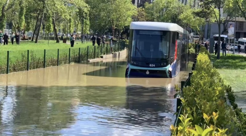 Su birikintisi nedeniyle Silahtarağa Tüneli'nde ulaşım aksarken, iki tramvay mahsur kaldı. Tramvay seferleri de aksadı.
