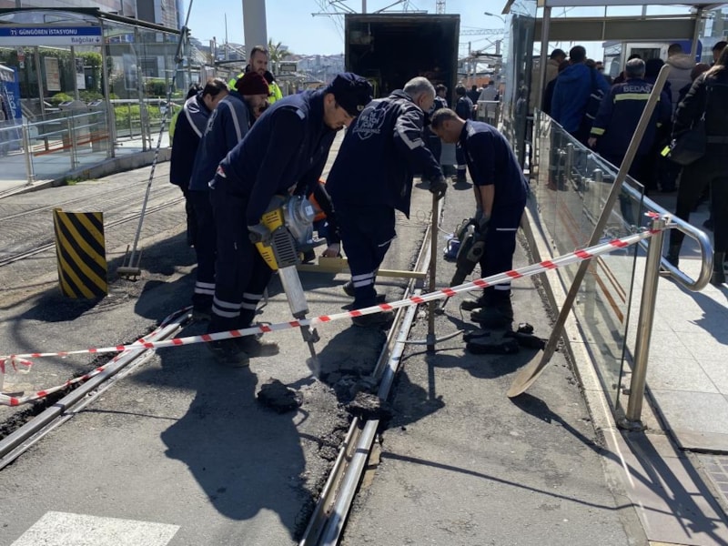 Otobüsle ilgili sorunların yanı sıra Kabataş-Bağcılar seferini yapan T1 tramvayı da Güngören durağında raydan çıktı.
