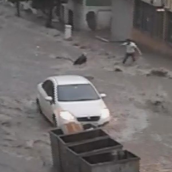 İlçede sel sularına kapılan bir kadın ölüme sürüklenirken, çevredekiler yardım eli uzattı.