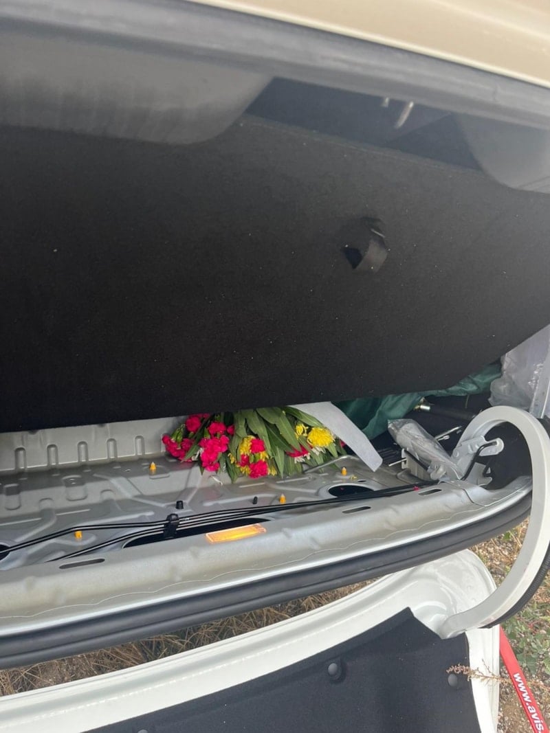 Aracın bagajında ise çiçekler görüntülendi.