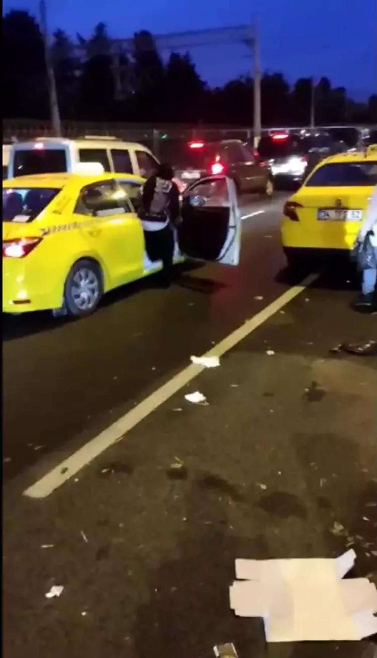 Yolun ortasında durup müşterilerle tartışan şoför, bir süre sonra taksiden indi. Taksici, duruma itiraz edip araçtan inmeyen 3 kadına 'Alın taksiyi gidin' diyerek tepki gösterdi.