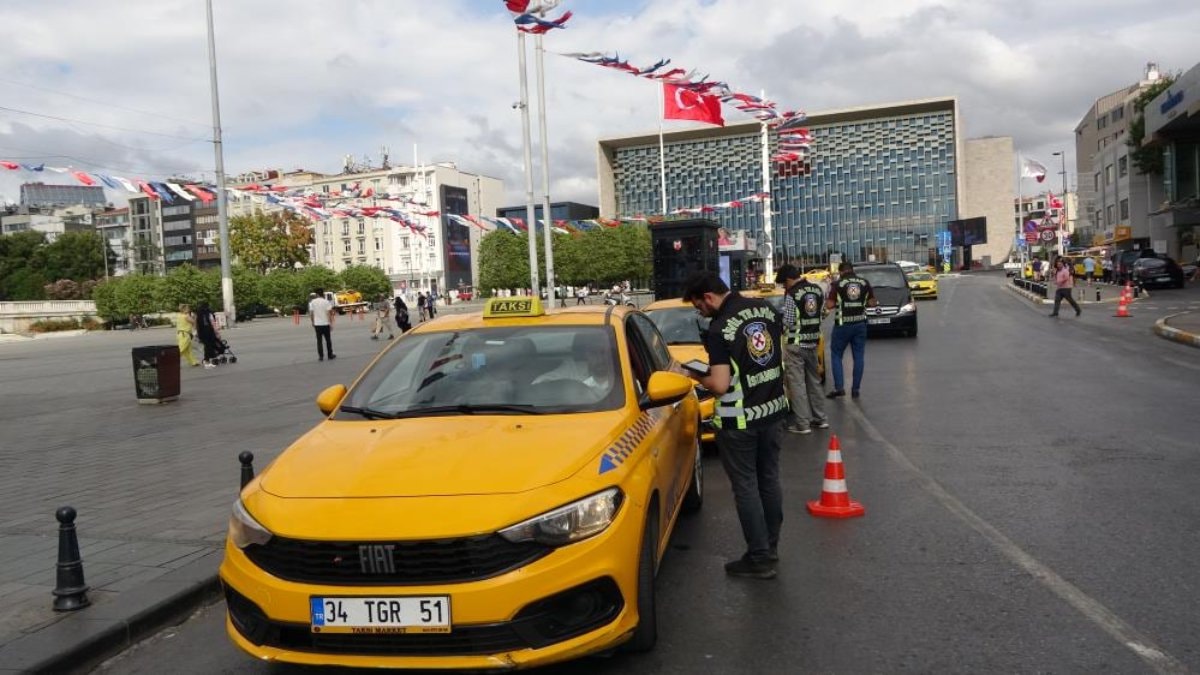 İstanbul Emniyet Müdürlüğü Trafik Denetleme Şube Müdürlüğü'ne bağlı sivil trafik polisleri tarafından Taksim Meydanı'nda taksicilere yönelik denetim gerçekleştirildi.