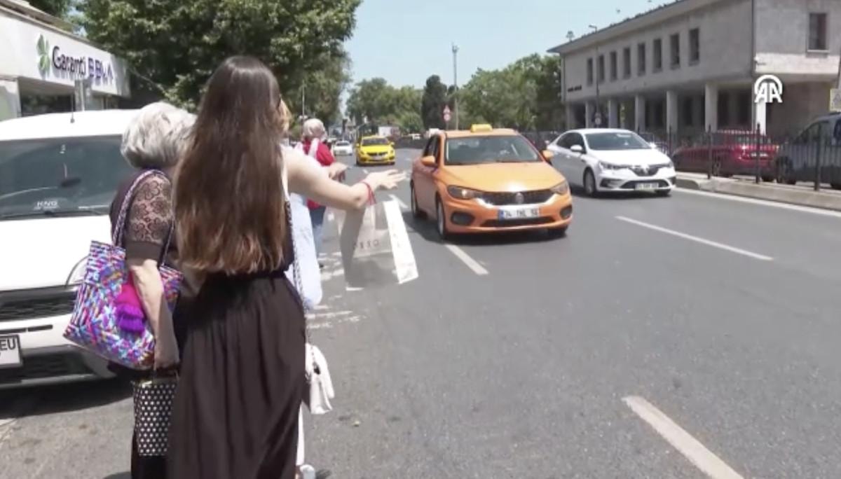 AA ekibi Taksim Meydanı'nda bu konuda yaşanan sorunu da görüntüledi. Bekleyen bir kadın müşteriyi, boş olmasına rağmen hiçbir taksi almadı.