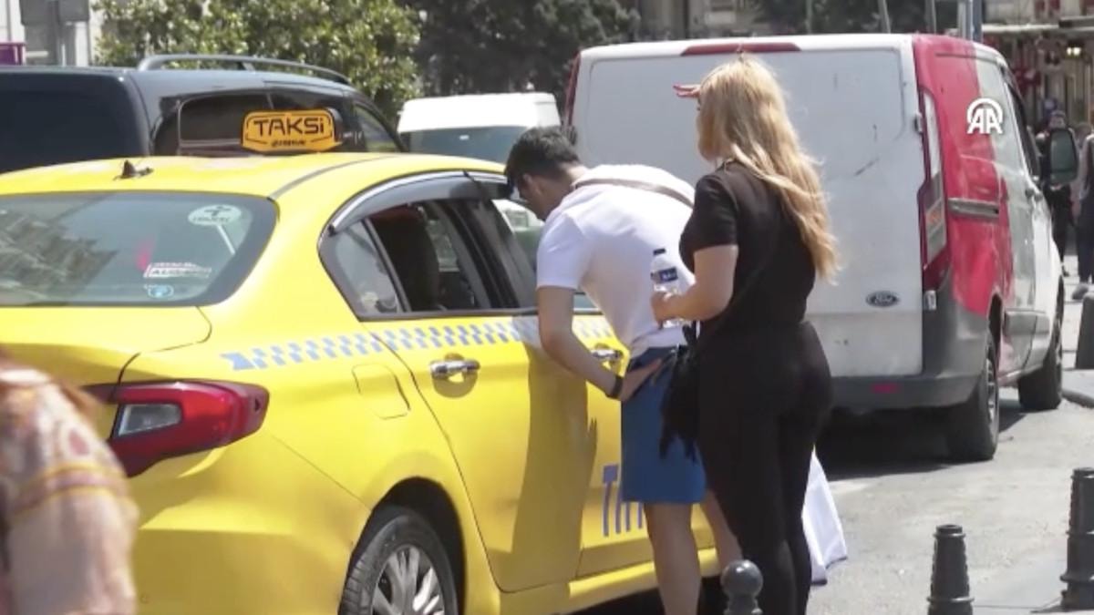 Taksicinin görüntüleri saniye saniye kaydedilirken, olayı sivil trafik zabıtaları da fark etti. Taksi durduruldu ve turist aile ile konuşuldu.