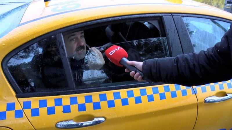 "Dolmuşçuluk yapıyoruz, hava muhalefeti var seferler iptal, bilet yok, kişi başı 500 lira, otobüsler zaten 300 lira" diyen taksici, daha sonra mikrofona, "Ben öyle bir şey söylemedim, bazı seferler iptal oldu.