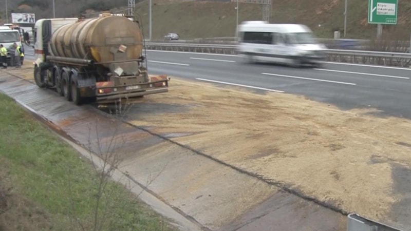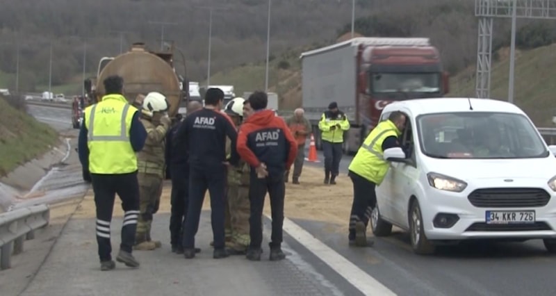 Olay yerine kısa sürede gelen ekipler tankerden otoyola yayılan maddenin endüstride ve su arıtma tesislerinde kullanılan demir klorür olduğunu belirledi.