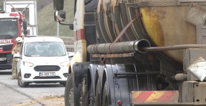 İstanbul Sarıyer'de 5 ton ağırlığında kimyasal madde taşıyan tankerin haznesi otoyolda seyir halindeyken bilinmeyen bir nedenle delindi.