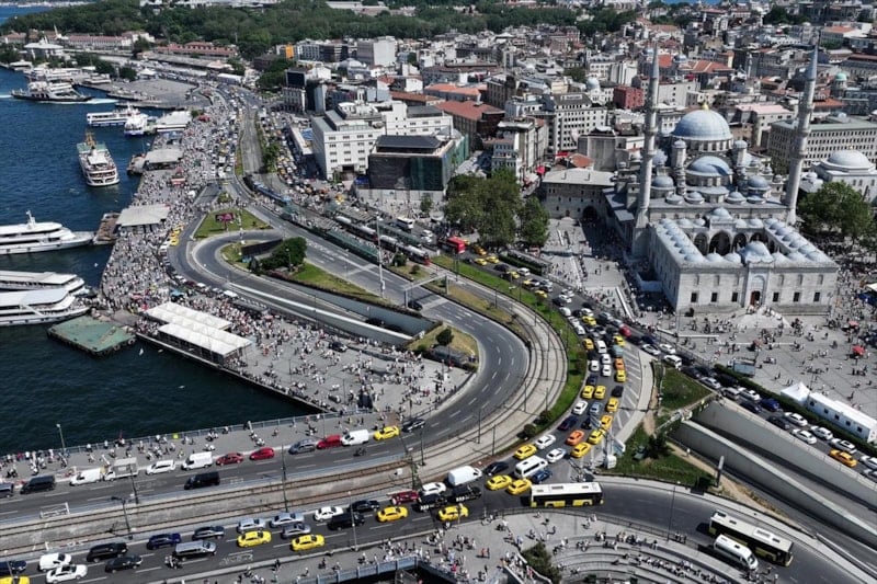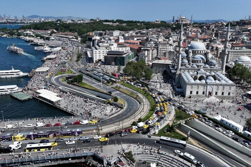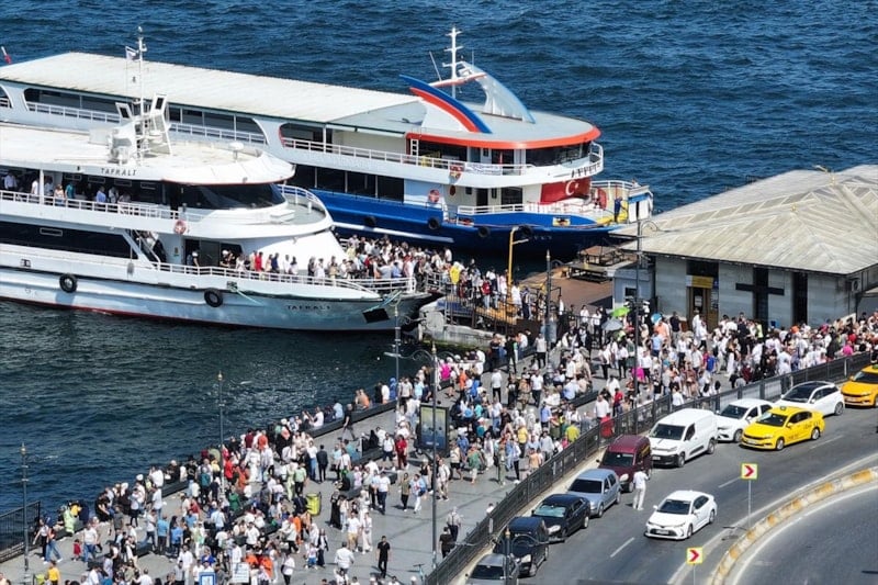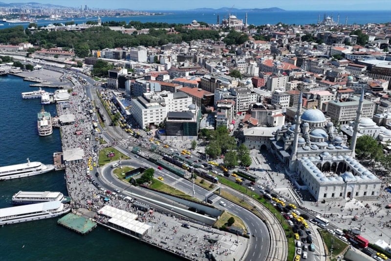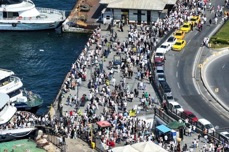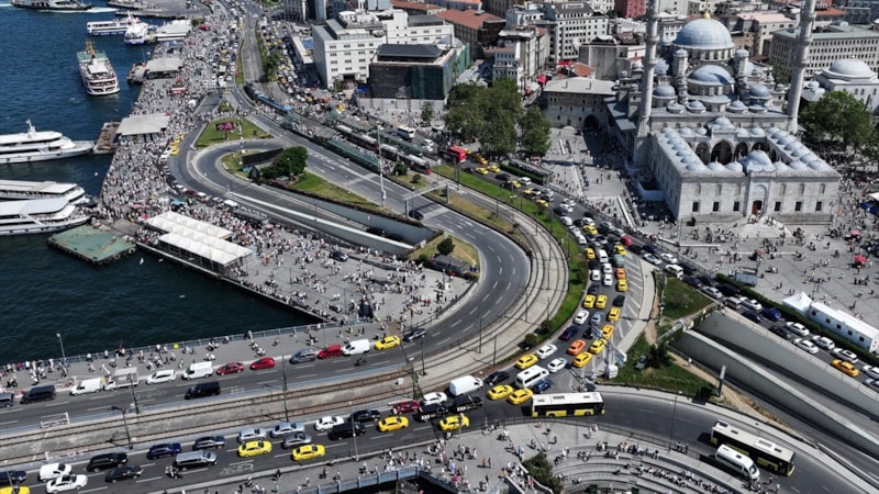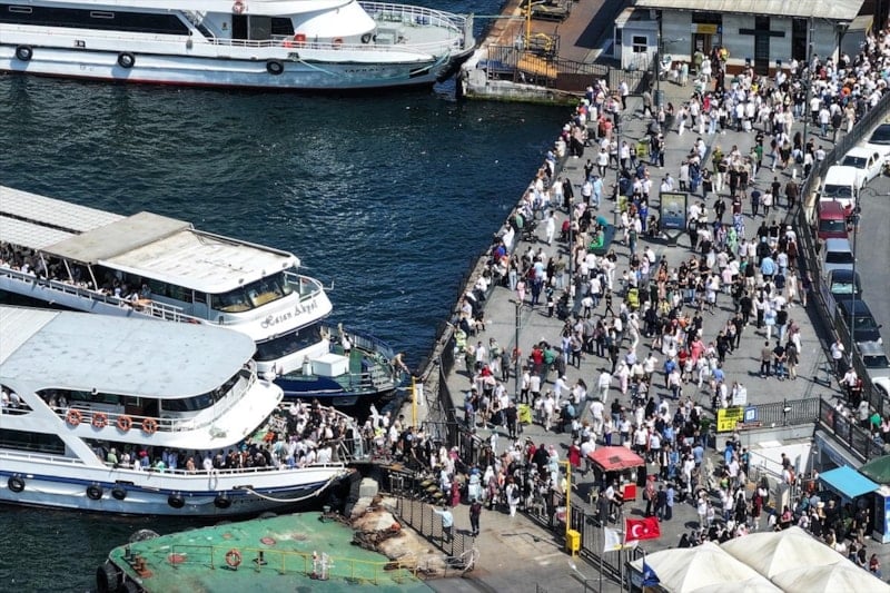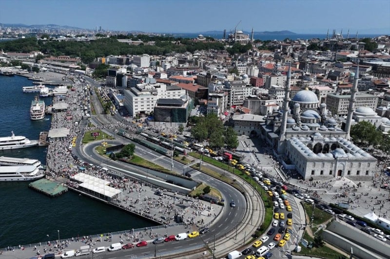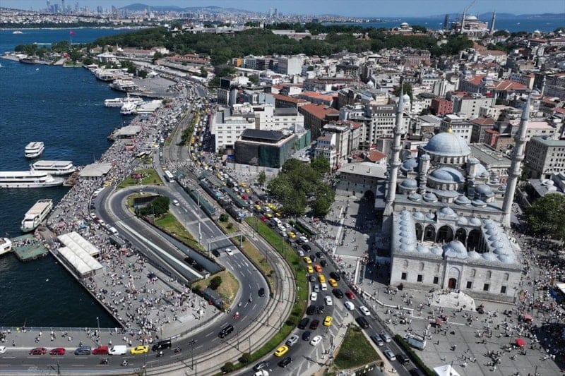 İstanbullular, sıcak havaya rağmen Eminönü Meydanı'nı doldurdu.