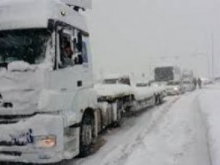 Yoğun kar yağışı nedeniyle kaygan olan yollar TIR'ların kaymasına ve kazalara neden oluyordu.