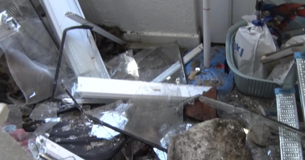 İstanbul'un Beşiktaş ilçesinde, boş araziden kopan taş ve toprak parçaları, 4 katlı binanın boşluğuna düştü.