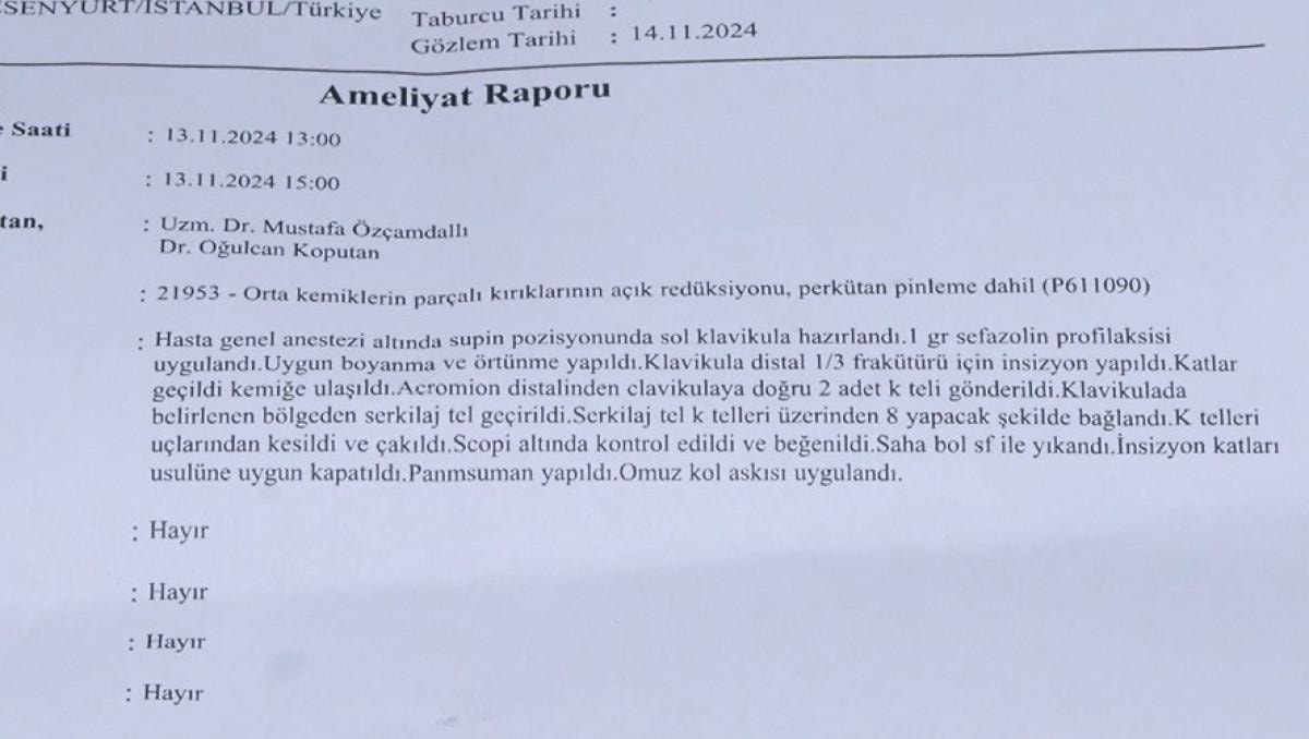 Şu an koluma platin takıldı ve ömür boyu kalacak. İşimden oldum, motorum pert oldu. Motorum kullanılmayacak halde. O şekilde benim de 3-4 ay yatışım var. Sigortadan bir şey alamayacağım, benim çalıştığım yer buna müsait değil.