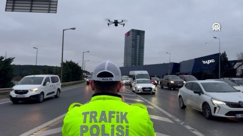 İstanbul trafiğinde kaynak yaparak, taralı alanları ihlal edenlere yönelik denetim yapıldı. Drone destekli denetimde taralı alan ihlali yapan sürücülere para cezası kesildi.