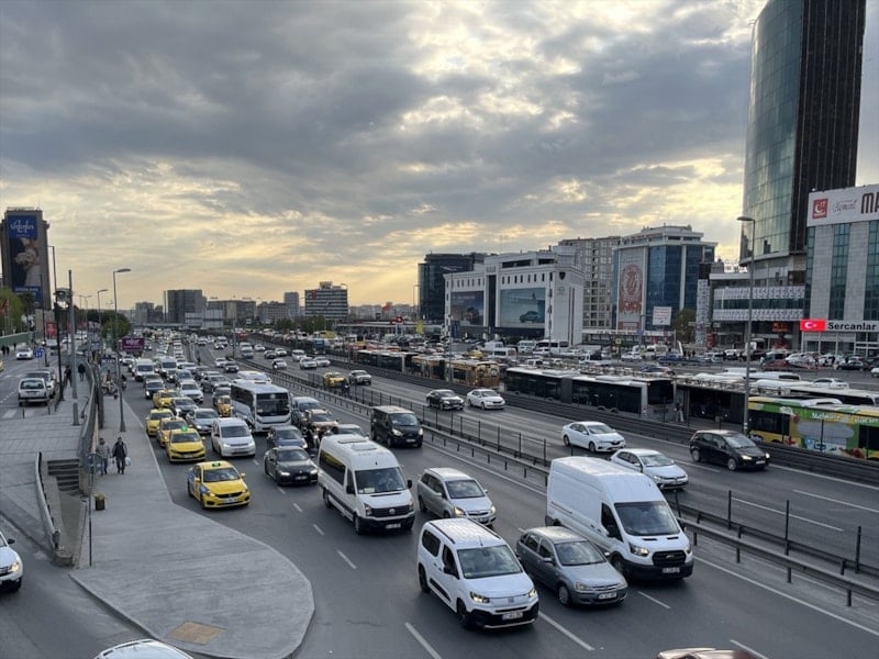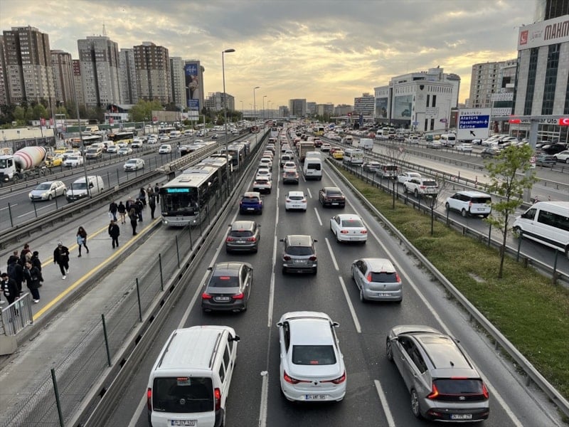 Megakent'te vatandaşların işten çıkarak evlerine yönelmesi sonrası akşam saatlerinde trafik yoğunluğu yüzde 87'ye yükselirken uzun araç kuyrukları görüntülendi.