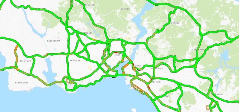 Trafik yoğunluğu haritasının büyük bir bölümünün, yeşil renge büründüğü görüldü.