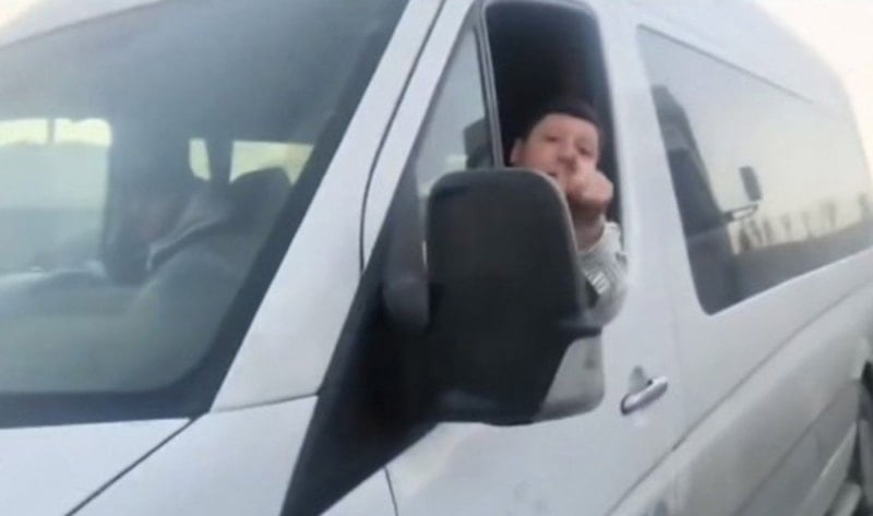 Aracından inmeye kalkan sürücüye videoyu çeken sürücü ise "Gel bir 170 bin lirayı ye. Oruç açacaksın. Çakala bak. Bunlar akşam oruç açacak, oruç. Hepsi tersten geliyor. Hepsi namazında niyazında oruç açmaya gidiyorlar." dedi.