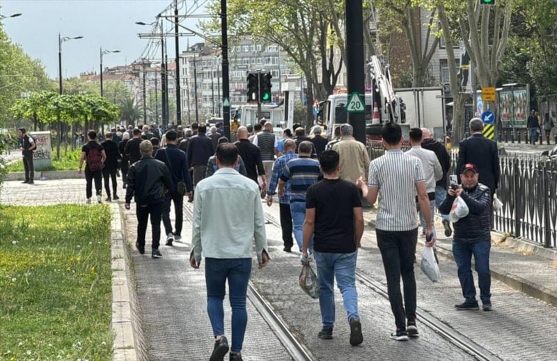Bazı vatandaşlar ise rayların üzerinde yürüyerek duraklara gitmeye çalıştı.