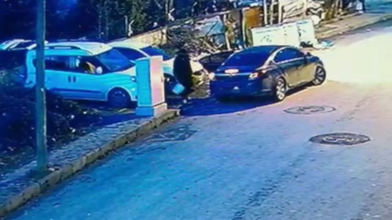 Hırsızlık anı sokakta bulunan bir binanın güvenlik kamerası tarafından saniye saniye görüntülendi.