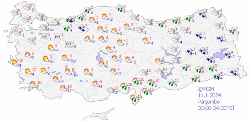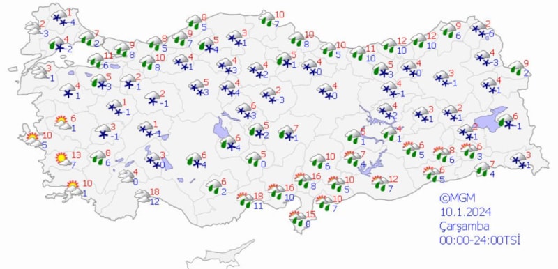 10 Ocak'tan itibaren hava sıcaklıklarındaki azalmayla birlikte yağışların yağmur, yer yer karla karışık yağmur ve yüksek kesimlerde kar yağışı şeklinde olacağı tahmin ediliyor.